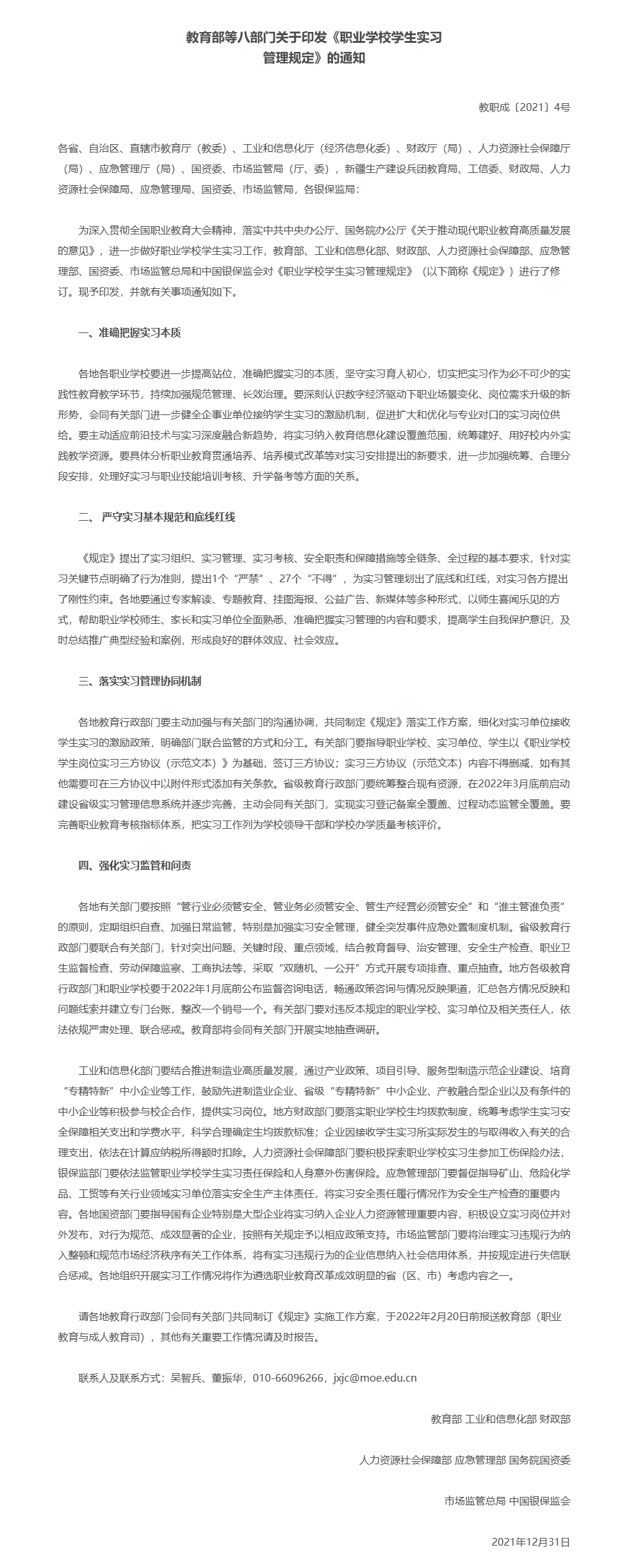 教育部等八部门关于《职业学校学生实习管理规定》的通知